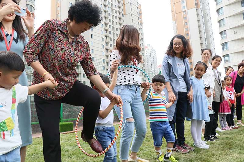 當(dāng)歡快的音樂聲響起,兩名老師帶領(lǐng)家長和孩子們跳起了舞蹈。大手牽小手,燦爛的笑容,俏皮的動作,一段美妙的親子時光慢慢上演。