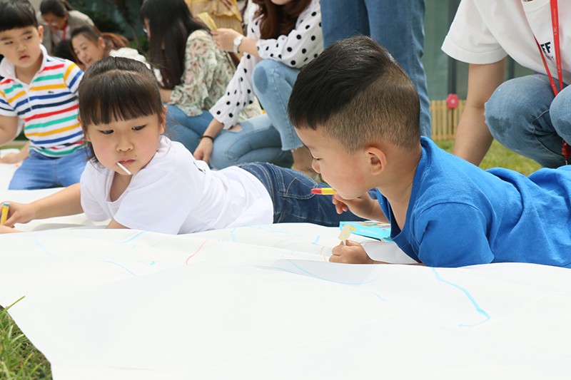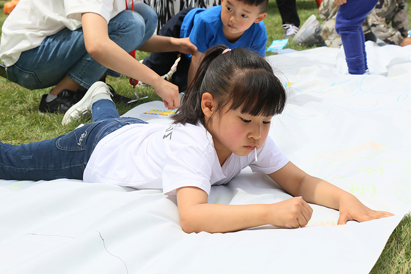 考驗(yàn)美術(shù)天賦的時候到啦!孩子們躺在畫布上,爸媽拿起畫筆,認(rèn)真描繪著孩子的模樣。你看,五顏六色的畫筆,畫出了一個多姿多彩的童年。