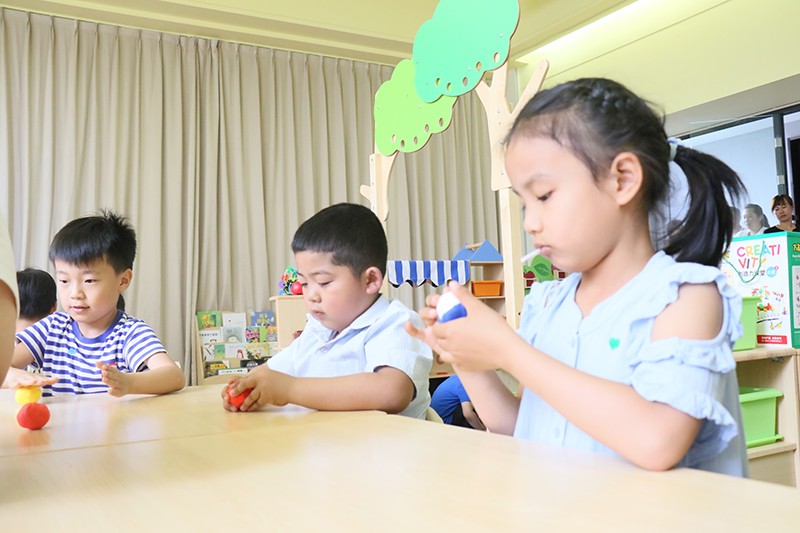 隨后,兩名老師帶領(lǐng)孩子們進(jìn)行了體驗(yàn)課。在老師的示范引領(lǐng)下,孩子們手中的橡皮泥,變成了一個個可愛的卡通形象。室內(nèi)孩子們玩得不亦樂乎,室外是家長們溢滿幸福的笑臉。