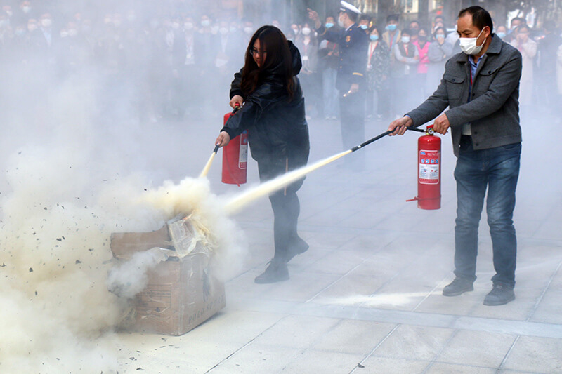 鄭巍參謀特別對滅火器的使用方法、種類、撲救對象和注意事項作了詳細(xì)的說明,對室內(nèi)消火栓、室外消火栓使用和維護(hù)以及應(yīng)急指示標(biāo)志進(jìn)行現(xiàn)場講解和體驗,并對參訓(xùn)人員提出的問題進(jìn)行了一一解答。隨后,參加培訓(xùn)的員工代表紛紛上前現(xiàn)場學(xué)習(xí),親身體驗使用滅火器滅火。