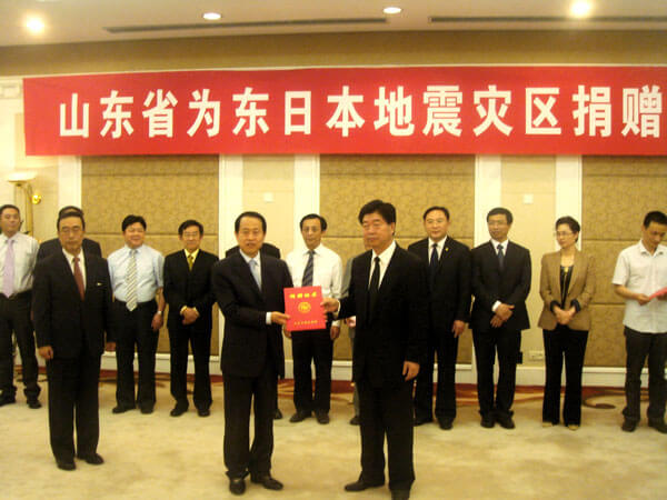 山東省慈善總會(huì)會(huì)長(zhǎng)謝玉堂代表山東省慈善總會(huì)向日本的地震及其引發(fā)的海嘯和核泄漏事故表示慰問(wèn)和哀悼。他希望日本人民盡快戰(zhàn)勝這場(chǎng)突如其來(lái)的災(zāi)難,迅速地恢復(fù)正常的生活和生產(chǎn)秩序。作為友好近鄰,我們特意組織了本次捐贈(zèng)活動(dòng),威海聯(lián)橋集團(tuán)等一些有責(zé)任、有愛(ài)心的企業(yè)慷慨解囊,并把所得善款通過(guò)日中經(jīng)濟(jì)交流協(xié)會(huì)轉(zhuǎn)給最需要幫助的地震災(zāi)區(qū),為災(zāi)區(qū)民眾的生產(chǎn)和生活做出一點(diǎn)貢獻(xiàn)。