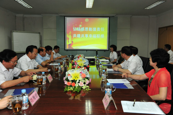 聯(lián)橋集團(tuán)黨委副書記、工會主席宋威麗向趙熙殿副書記一行介紹了集團(tuán)公司和工會工作的基本情況,著重匯報(bào)了聯(lián)橋集團(tuán)在“弘揚(yáng)感恩彰顯責(zé)任,共建共享幸福聯(lián)橋”工作中的舉措和體會。