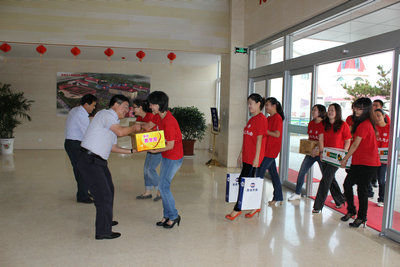 2012年9月27日下午,聯(lián)橋集團(tuán)愛(ài)心媽媽志愿者團(tuán)隊(duì)在集團(tuán)黨委副書記宋威麗的帶領(lǐng)下,前往威海兒童福利院,給孩子們送去150箱愛(ài)心水果和一些生活用品,送去了節(jié)日的問(wèn)候和深切的關(guān)愛(ài)。威海市兒童福利院江海剛院長(zhǎng)熱情接待了志愿者們。