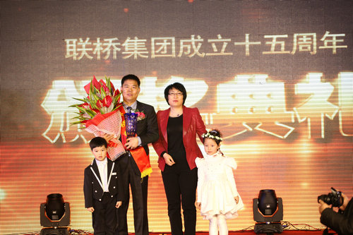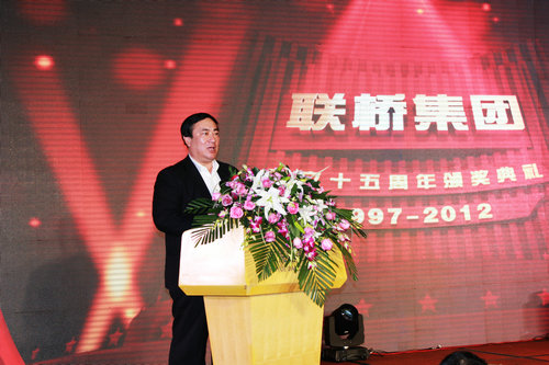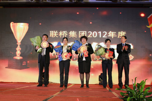 首先舉行的是聯(lián)橋集團(tuán)成立十五周年頒獎(jiǎng)典禮,通過(guò)LED大屏幕,播放獲獎(jiǎng)人員VCR及頒獎(jiǎng)詞,頒獎(jiǎng)?lì)I(lǐng)導(dǎo)簇?fù)砜蓯?ài)的小花童上臺(tái),把精美的獎(jiǎng)杯、鮮花和紅包,授予為聯(lián)橋集團(tuán)建設(shè)和發(fā)展做出卓越貢獻(xiàn)的2名聯(lián)橋棟梁、8名建業(yè)功勛和9名敬業(yè)典范。在2012年度表彰儀式上,對(duì)14個(gè)先進(jìn)部門(mén)和企業(yè)、58名先進(jìn)個(gè)人進(jìn)行了表彰。