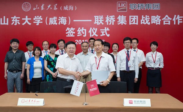 2015年7月16日,聯(lián)橋集團(tuán)與山東大學(xué)(威海)戰(zhàn)略合作簽約儀式在聯(lián)橋集團(tuán)舉行。山東大學(xué)(威海)黨委副書記趙玉璞和聯(lián)橋集團(tuán)黨委書記、董事長慕镕鍵代表雙方簽署了戰(zhàn)略合作協(xié)議。全國政協(xié)常委、中國社會(huì)科學(xué)院學(xué)部委員、山東大學(xué)東北亞研究中心理事長張?zhí)N嶺教授、山東大學(xué)(威海)合作發(fā)展處副處長劉曉軍、山東大學(xué)(威海)科研處副處長吳玉閣,聯(lián)橋集團(tuán)副總經(jīng)理于福杰、副總經(jīng)理慕雙舉、聯(lián)橋新材料副總經(jīng)理李曉妹等領(lǐng)導(dǎo)出席儀式,簽約儀式由聯(lián)橋集團(tuán)黨委副書記宋威麗主持。